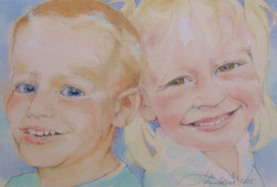 Siblings pastel/watercolor