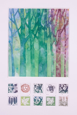 block print/watercolor
