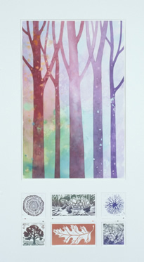 block print/watercolor