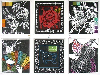 above: Selected Landscapes : Scenes , block print/collage, 25 " x 36 "